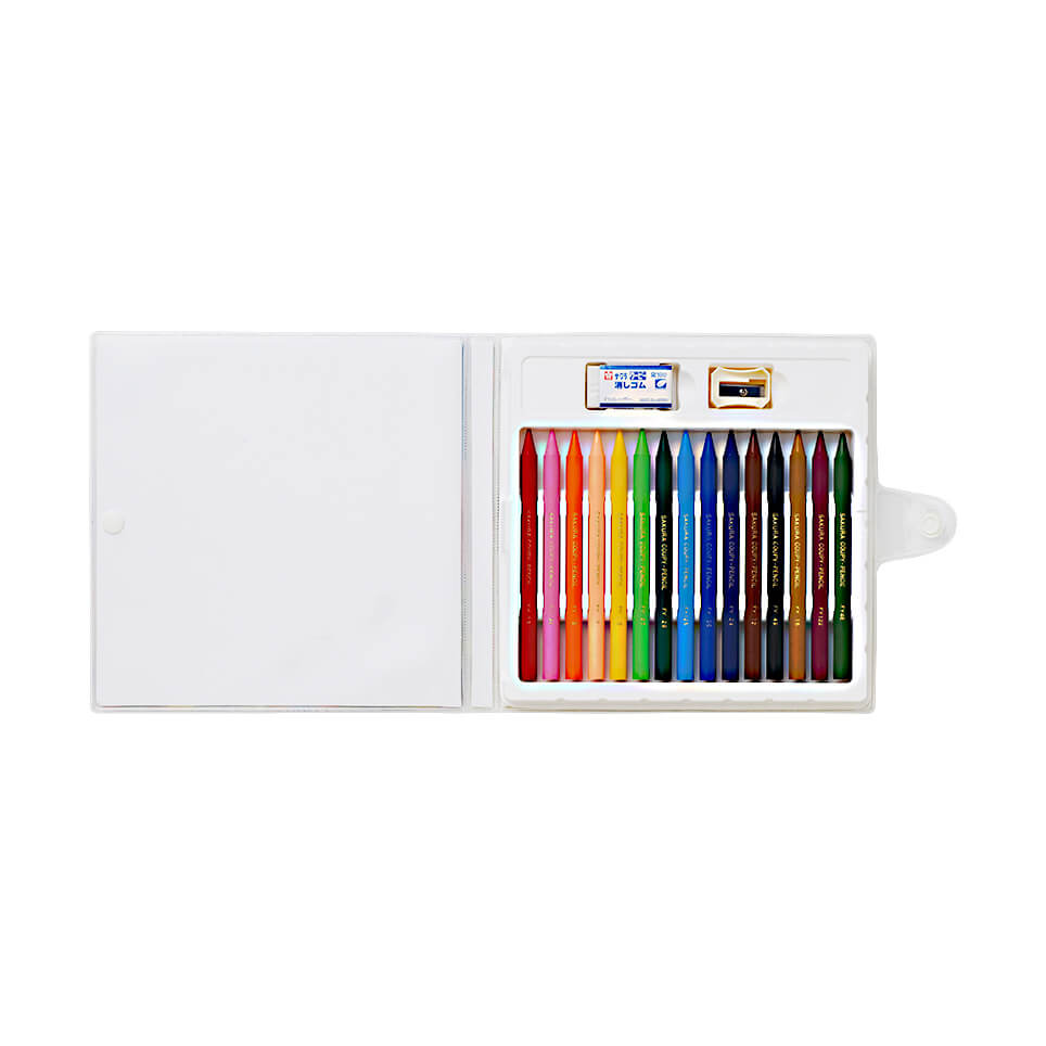 ●折れにくく、消しやすい、削ることができる。全部が芯の色鉛筆です。 ●色鉛筆の書きやすさと、クレヨンの持つ発色の美しさを生かした新しいタイプの色鉛筆です。 ●軸全体が芯になっているため、芯の容量は、従来の色鉛筆の約4倍となって、経済的です。 ●削り器と消しゴム付きです6年間使える小学生のための全部が真の色鉛筆 自然観察や地図の塗分けに適した3色をプラス