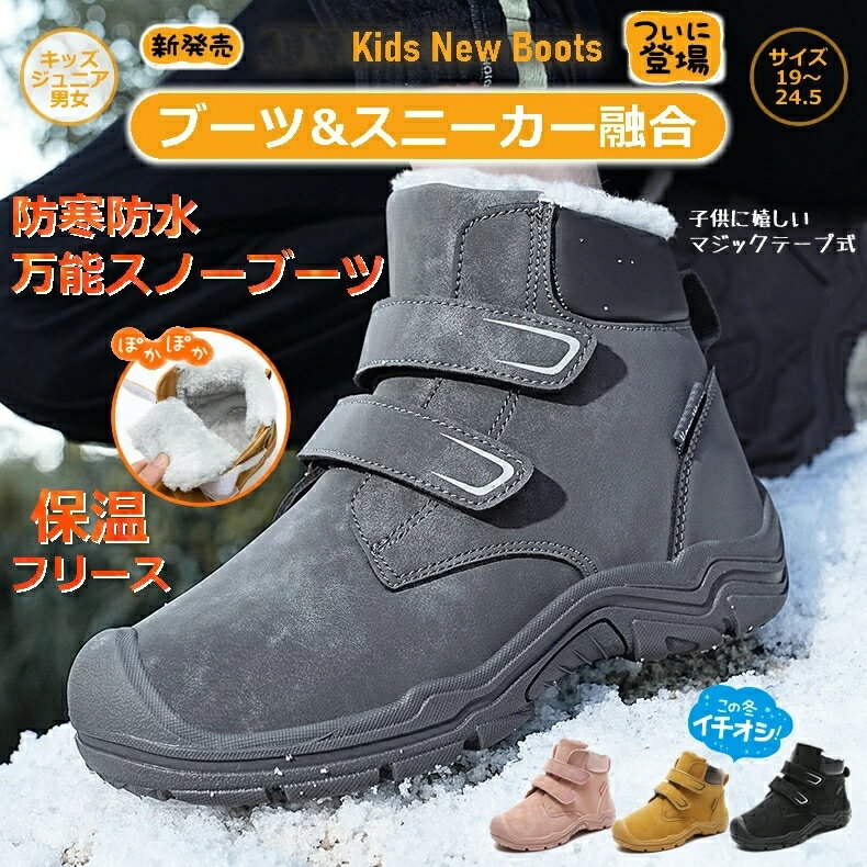 P10倍★ブーツ 子供用ブーツ キッズブーツ スノーブーツ ジュニアブーツ ショートブーツ 男の子 女の子 マジックテープ アウトドア 軽量 保温 防水 シューズ おしゃれ 可愛い かわいい 防寒対策 お出掛け 外出 通園 通学 19.0cm~24.5cm