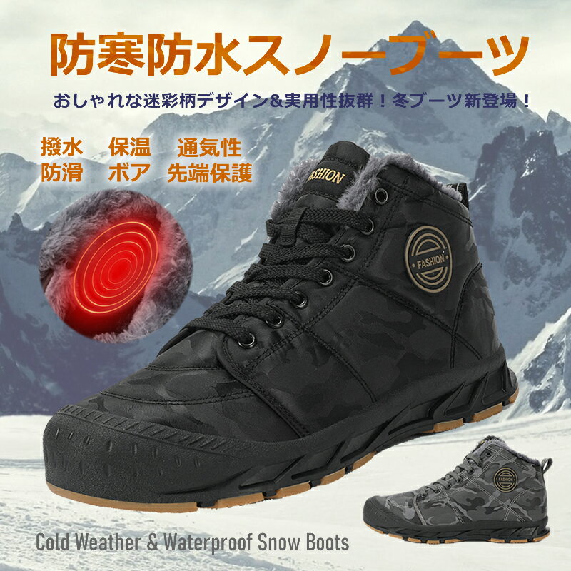 クーポンで3,180円+P10倍★★スノーブーツ ブーツ メンズ 靴 ショートブーツ ハイカットオシャレ 防寒靴 撥水防水 防滑 保温 裏起毛 ファー付き 雪靴 迷彩柄スノーシューズ ウィンターブーツ 冬用 運動靴 通勤 通学 軽量