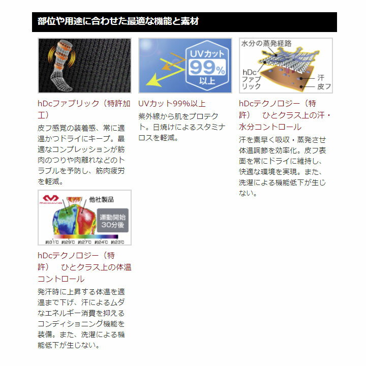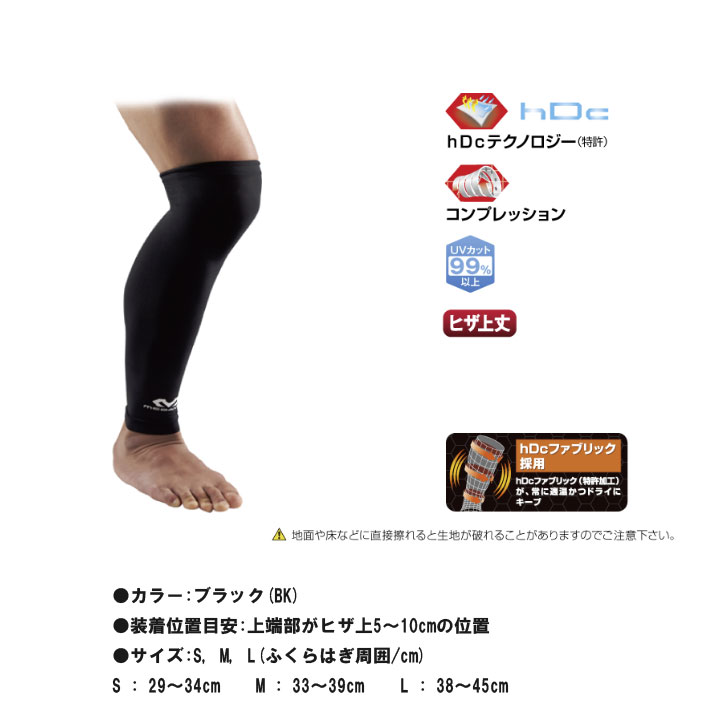 マクダビッドM6570パワーレッグスリーブ ロング(1本入) ふくらはぎ用サポーター mcdavid POINT ●ふくらはぎ+ヒザを軽くサポート ●脚の疲れ・むくみを軽減 ●過剰な汗ムレ・冷えを抑制 ●究極の薄さ(0.63mm)、フィット性 ●上端部にずり落ち防止加工(グリップゴム) ●hDc機能搭載(劣化しない吸汗・速乾機能) ●UVカット 99%以上 ■お手入れ 汚れた場合は、中性洗剤を溶かしたぬるま湯で手洗いを推奨します。 色落ちする事がありますので、同色系の衣料と洗濯して下さい。 洗濯機を使用する場合は洗濯ネットに入れて、弱水流でのソフトに洗濯して下さい。 乾燥機、柔軟剤、漂白剤は使用しないで下さい。 ※商品のロゴ部分は生地に圧着しておりますので、長くご使用頂く中で剥がれてしまう可能性がございます。 ※ドラム式洗濯機は商品を傷めてしまう可能性がある為お避けください。 ※洗濯後は陰干しし、十分乾燥させてください。 ■ご使用上の注意 マクダビッドサポーターは、痛みを取ったり、治療効果をもたらすものではありません。 また、傷害を完全に予防することはできません。 傷害の予防には、筋力や柔軟性を十分に高めておくことが大切です。 ■次のような場合には使用しないでください ・血圧の高い方、心臓など血行に障害のある方。 ・脚部や足部に傷害をお持ちの方(糖尿病、神経傷害など)。 ・繊維に対して皮膚が過敏な方、アレルギー体質の方。 ・装着部に傷、腫れ、かぶれ、湿疹、骨折、しびれ、かゆみなどがある方。 ・使用中、使用後に皮膚に異常があらわれた時は使用を中止し、医師へご相談下さい。 カラー ブラック(BK) サイズ(ふくらはぎ周囲) S : 29〜34cm, M : 33〜39cm, L : 38〜45cm ※長時間のご使用(ゴルフ、登山等)により本体内側のグリップゴム部が皮膚の炎症を引き起こすことがあります。 装着位置目安 上端部がヒザ上5〜10cmの位置 在庫につきまして ※在庫データは定期的に更新しておりますが、実店舗と在庫を共有している商品もございますので、 日々在庫が変動しており、ご注文のタイミングによっては欠品・完売の場合がございます。 お取り寄せの商品につきましても、リアルタイムのメーカー在庫ではございませんので、予めご了承下さい。 ご注文商品の在庫有無・納期につきましては、当店からのメールにてお知らせいたします。