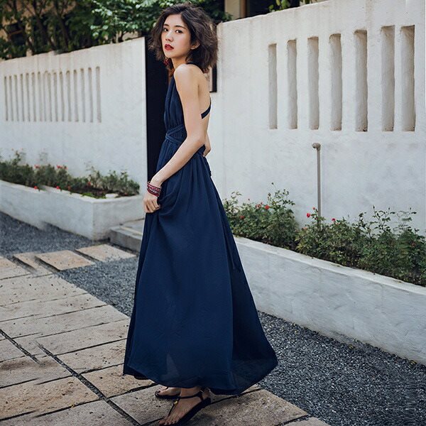 リゾートワンピース リゾートワンピ ハワイ リゾート ワンピース ハワイアン 背中 開き 大人可愛い かわいい 夏ワンピース 夏 ノースリーブ 肩出し マキシ ボヘミア ビーチ 春 夏 体型カバー 海デート 大人な雰囲気満々df042y6y6g5