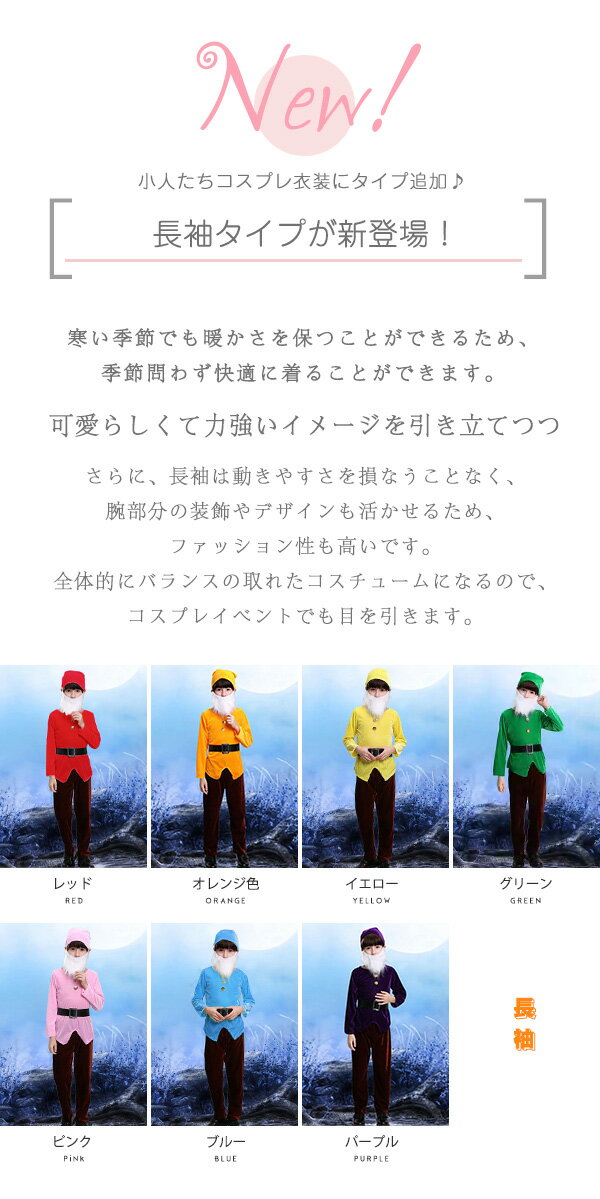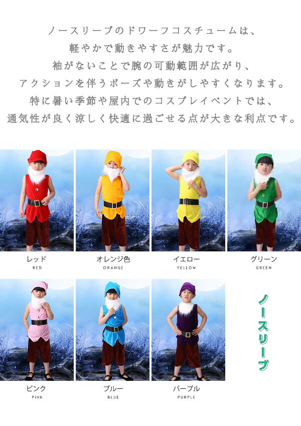 コスプレ衣装 姫 と7人の小人たち 変装 道具 イベント パーティー 子供 5点セット コスプレ ハロウィン 仮装 コスチューム 子供服 男の子 ハロウィン 小人 衣装 キッズ ピンク 紫 青 緑 黄色 オレンジ 赤 eb924c0c0n1