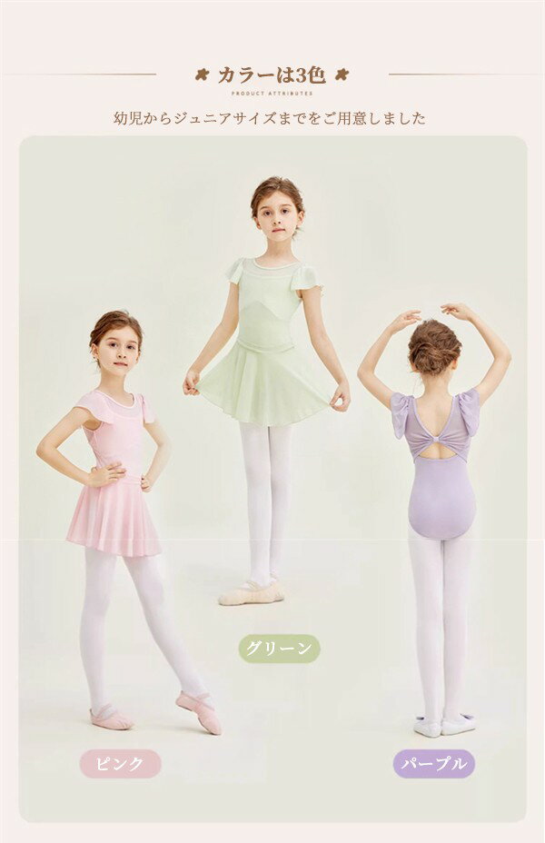 レオタードスカートセット バレエオタード スカート付き バレエレオタード 女の子 子供 子供用 子供サイズ キッズ ジュニア ダンス 体操 バレエ用品 新体操 シンプル 練習服 レッスン着 ステージ衣装 発表会 バレリーナ 可愛い かわいい 練習 レッスン グリーン