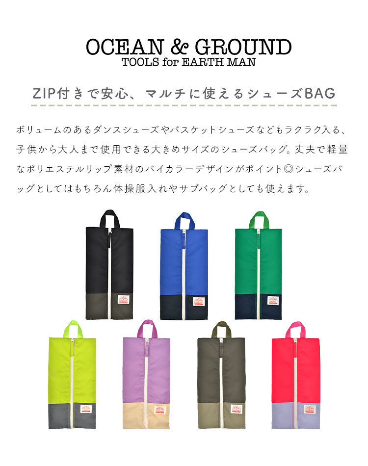 シューズバッグ ocean&ground オーシャンアンドグラウンド 男の子 女の子 シューズケース 小学校 子供 大人 大きめ ファスナー付き 上履き入れ 靴入れ 靴袋 小学生 中学生 軽量 キッズ シンプル シューズバック 斜めがけ おしゃれ 無地 丈夫 入学 準備 通学 部活 スポーツ