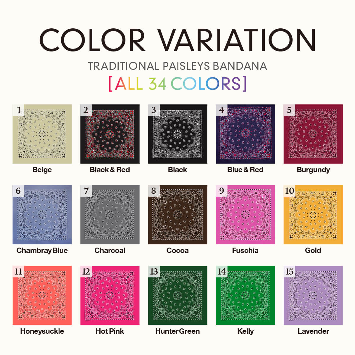【まとめ買いクーポンあり】 ハバハンク TRADITIONAL PAYSLEYS バンダナ [カラー:1〜15] コットン 綿 大判 黒 バーガンディ ブルー 水色 青 グレー チャコール 灰色 茶色 コーラル 黄色 緑 紫 ビビットカラー パステルカラー バイカラー ツートンカラー ファニー