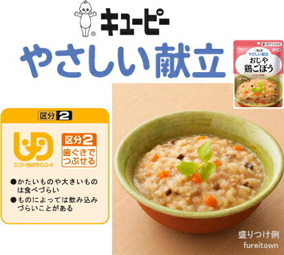 【介護食】【キューピー やさしい献立】 おじや鶏ごぼう ※鶏肉、ごぼう、にんじん、たけのこで味わい深く仕上げた炊き込みご飯風のおじやです。【コシヒカリ使用】[UDF区分2] 歯ぐきでつぶせる 介護 福祉 サービス 高齢 者 デイ サービス シニア