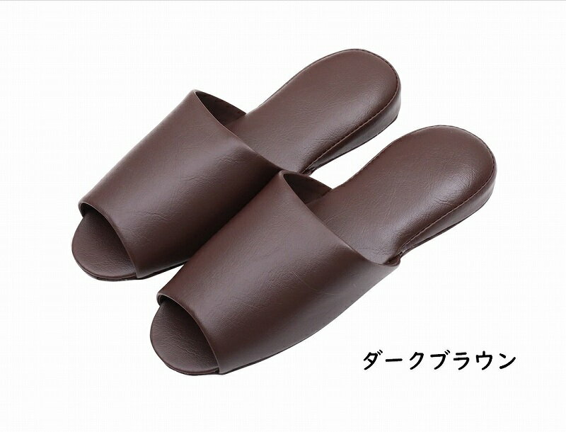 通気性に優れた、蒸れにくい前開きタイプのレザー調スリッパ。職人さんこだわりのしっかりとした作りで、耐久性にも優れています。また、底面の圧着式製法により、糸ほつれの心配もございません。 かかと部分に厚みをもたせ、さらにクッション性のある仕上げとなっておりますので、履き心地もとても快適で長時間使用しても疲れにくいです。シンプルな無地デザインですので、シーンや場所を選ばずご使用いただけます。 ご自宅用はもちろんのこと、来賓・来客用に。また歯医者さんなどの病院関係、事務所やオフィス、モデルハウスやモデルルーム、ホテル、旅館、民泊、各種施設、学校、幼稚園や保育園などシーンを選ばず重宝する業務用にも最適なスリッパです。 汚れても、さっとひと拭きでいつでも清潔。PVC素材のため、汚れたら水拭きができ、お手入れも簡単楽々です。さらに抗菌素材仕様でより衛生的(素材の塩化ビニールに抗菌剤を練り込んでいます)。施設など不特定多数の方が履かれる場所に特にオススメです。 単品での販売やお得なセット販売、別タイプなどはこちら >> サイズ ■Mサイズ:外寸 約26.5cm ※適応サイズ(約)23.0〜25.0cm 程度の方向け ■Lサイズ:外寸 約28.0cm ※適応サイズ(約)25.5〜27.0cm 程度の方向け ■ヒール部厚さ:約3.0cm 内容量 10足入り 素 材 ■表地・甲裏・裏底:抗菌塩化ビニール(PVC)■ヒール内部:EVA 裏底仕様 滑り止め付き 生産国中国 備 考 お使いのPC等のモニターなどの環境により、お届けする実物の色合いと画像のものと多少異なる場合がございます。予めご理解、ご了承の程よろしくお願い致します。