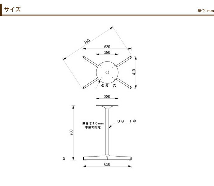 商品名 テーブル脚 J-5 サイズ 620×410×38.1Ф(mm) カラー BR ブラウン塗装、SV シルバー粉体塗装、BL ブラック粉体塗装 ※「CR クロームメッキ」をご希望の方はお問い合わせください。 生産国 日本製 区 分 テーブル脚 テーブル 脚 あし 机 デスク 家具 オーダー 日本製 パーツ 部品 ダイニング 店舗 ラウンジ テーブル脚(十字脚) J シリーズ 465×465×38.1Ф 532×532×38.1Ф 495×325×38.1Ф 535×335×38.1Ф 620×410×38.1Ф