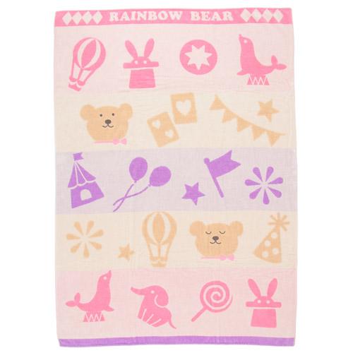 【新柄】レインボーベア サーカス 大判バスタオル(タオルケット)ピンク・イエロー・サックス(プレゼント ギフト) 【送料無料(沖縄県・離島は配送不可)】