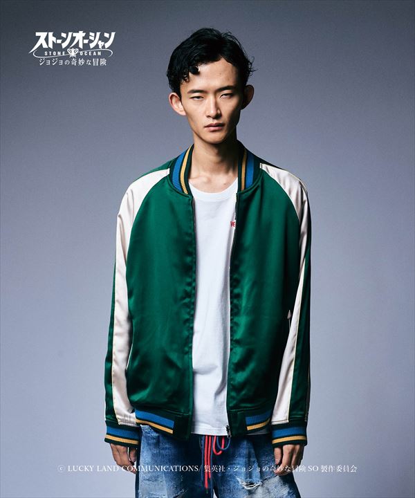 アニメ『ジョジョの奇妙な冒険』シリーズとのコラボレーションにより数多くのアイテムを発表してきたglambが『ジョジョの奇妙な冒険 ストーンオーシャン』と二度目のコラボレーションを発表。 主人公、空条徐倫の佇まいをリバーシブルで表現したJolyne Ska Jumper。サテン調の光沢生地を用いたスカジャンの面はBlackとキャラクターのイメージカラーにちなんだGreenの二色展開。逆面にはオールドアメリカなタッチで描いた空条徐倫を総柄であしらい、監獄を舞台にした『ストーンオーシャン』のアウトローな世界観をグラフィック技法的にも表現しています。 ボディは身幅にゆとりを持たせたレギュラーシルエット。身頃には両面仕様のダブルジップを使用しており、どちらの面で着用する際にもニュアンスを付けたスタイリングをお楽しみいただけます。 ■ジョジョの奇妙な冒険 ジョジョの奇妙な冒険とは、1987 年より『週刊少年ジャンプ』にて連載がスタートした荒木飛呂彦原作の大人気漫画。 2021 年より、アメリカの海に囲まれた刑務所を舞台に空条徐倫と仲間たちによる壮大な戦いを描いた原作第6部にあたる『ジョジョの奇妙な冒険 ストーンオーシャン』がアニメ化され、大きな盛り上がりを見せている。只今アニメ第24 話までがNetflix にて全世界独占先行配信中。 【ご注意】予約商品・お取り寄せ商品(納期10日間以上)のキャンセル、変更はお断りしております。*クレジット払いの場合、実際の決済はお客様へ商品発送後となります。 素材 サイズ・素材画像参照 サイズ サイズ・素材画像参照 モデル着用サイズ モデル着用サイズ画像参照 ※サイズの測り方は、サイズガイドページを参照ください。 カラー カラー表参照 ご注意 【店舗完売やお取り寄せ不可によるキャンセルについて】このWEBショップで販売中の商品は、実店舗や他WEBショップの在庫数が反映されています。反映にはタイムラグがあるので、在庫変動があった場合、タイミングによってはご用意ができない場合がございます。万が一ご用意ができなかった場合は、メールにてご連絡いたしますので、あらかじめご了承ください。※商品写真はできるだけ現物に近い色に見えるよう撮影いたしておりますが、ユーザー様のモニターやPCの環境により、色の見え方に差異が生じる場合もございますのでご了承くださいませ。