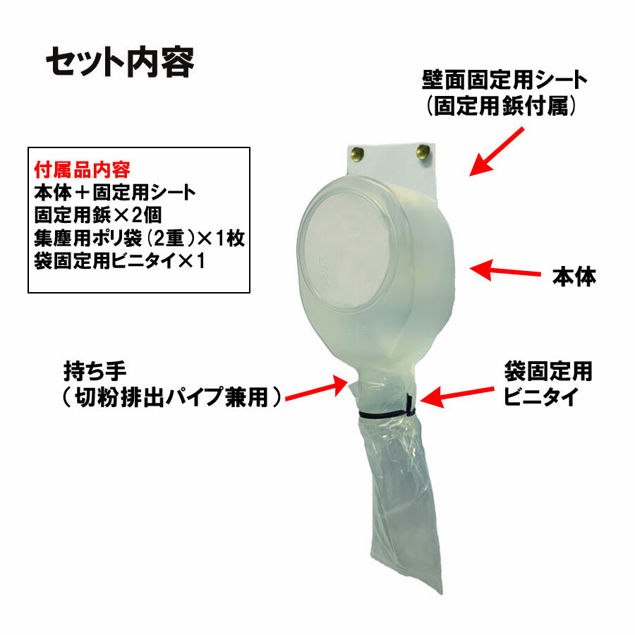 壁面への穴あけ時のゴミの飛散防振に。非常に安価なうえに集塵袋を交換する事で繰り返し使用出来ます。壁面への穴あけ時のゴミの飛散防振に。非常に安価なうえに集塵袋を交換する事で繰り返し使用出来ます。