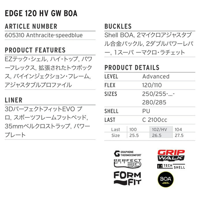 HEAD ヘッド スキーブーツ EDGE 120 HV GW BOA ANTHRACITE-SPEEDBLUE 25-26 モデル
