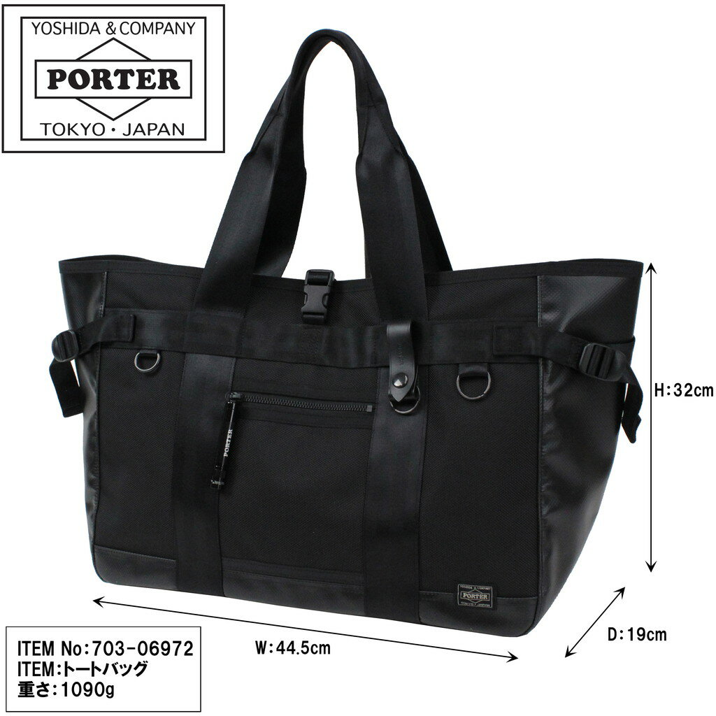 ポーター ヒート トートバッグ 703-06972 ブラック 10 吉田カバン PORTER HEAT TOTE BAG 手持ち 大容量 メンズ レディース ビジネス カジュアル トラベル アウトドア ミリタリー 耐久 耐水 日本製