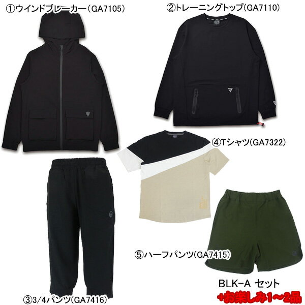 お買い得福袋メーカー:ガビック GAVICセット内容・ウインドブレーカー(GA7105)・トレーニングトップ(GA7110)・3/4パンツ(GA7416)・Tシャツ(GA7322)・ハーフパンツ(GA7415)+お楽しみ1〜2品カラー:<BLK-A セット>・ブレーカー【BLK】・トレーニングトップ【BLK/BLK】・3/4パンツ【BLK】・Tシャツ【BLK/WHT/BEG】・ハーフパンツ【KHK】<BLK-B セット>・ブレーカー【BLK】・トレーニングトップ【NVY/BLK】・3/4パンツ【BLK】・Tシャツ【NVY/WHT/G.BLU】・ハーフパンツ【BLK】<KHK セット>・ブレーカー【KHK】・トレーニングトップ【KHK/BLK】・3/4パンツ【BLK】・Tシャツ【BLK/WHT/BEG】・ハーフパンツ【KHK】※セット販売のため、違うサイズは選べません※不良品以外の返品・交換はお受けできません