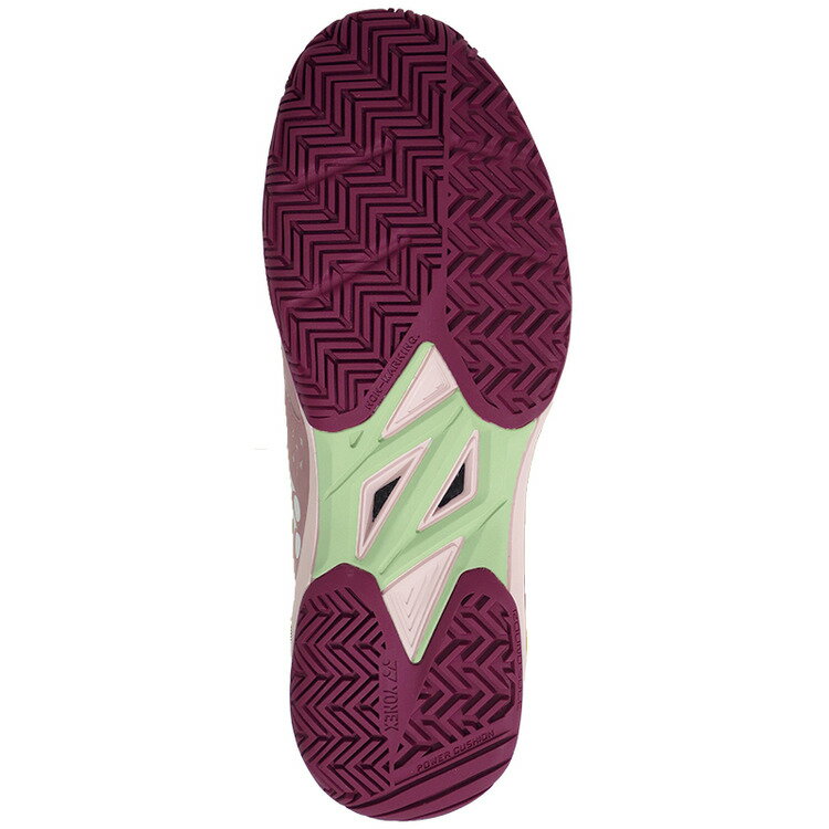 【パワークッションプラス】弊社独自の衝撃吸収性と反発性を併せ持つ衝撃吸収素材パワークッションR。パワークッションRに反発性の高い特殊樹脂を添加し、格子状に+型の溝を最適な間隔と深さで配置した新構造を採用した「パワークッションRプラス」は、従来の軽量性を保ちつつ、衝撃吸収性を28%※1、反発性を62%※2向上させ(一般的な衝撃吸収材[EVA]との比較)、12mの高さから落とした生卵が、割れずに6m以上跳ね返る※3新衝撃吸収反発素材です。 ※1 (一財)日本車両検査協会にて測定 ※2 (一財)ボーケン品質評価機構調べ JIS法準用 ※3 ヨネックス調べ●カラー:(486)スモークピンク●サイズ:22.5-25.5●仕様:パワークッションプラス、デュラブルスキンライト、パワーカーボン、ダブルラッセルメッシュ、エンデュランスラバー、ハイパーフェザーライト、トウアシストシェイプ、インナーブーティー、低反発インソール、ラウンドソールR7、●素材:アッパー:合成繊維+合成樹脂ミッドソール:合成樹脂アウトソール:ゴム底●原産地:ベトナム