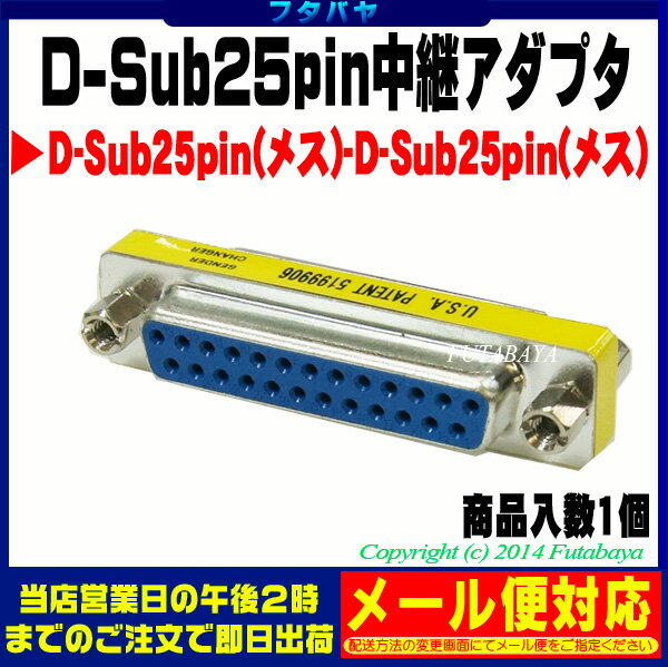 D-Sub25pin中継・変換コネクタ RS232Cケーブル中継・変換コネクタ RS232Cタイプのケーブル延長時の中継用アダプタとして使用可能 また、オス端子をメス形式に変換時に使用 商品説明 D-Sub25pin(メス) D-Sub25pin(メス) ジェンダーチェンジャー 内容量 1個 RoHS ROHS対応 梱包 簡易包装にてお届けいたします。 生産国 中国製 D-Sub端子には複数種類の形状がございますのでご購入時にはお使いの製品・サイズ・規格等を確認した上でご購入お願いいたします。 また、機器によりましては相性などにより正常に動作しない場合もございます。 メーカー様の都合にて形状や長さ等が画像と異なる場合がございますがご了承お願いいたします。 不良品以外の返品・交換はお断りさせて頂いております。 保証期間・商品発送後2カ月とさせて頂きます。 ・パソコン用配送方法変更のしかたはこちらから・