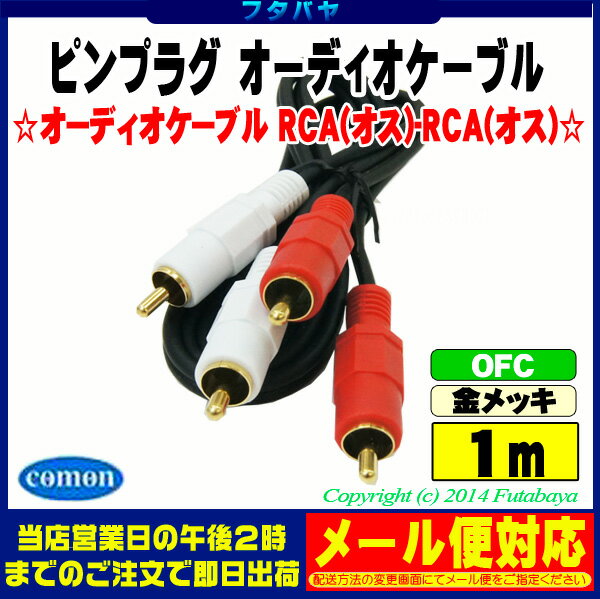 1mピンプラグオーディオケーブル RCA(オス)⇔RCA(オス)赤・白 COMON(カモン) OD-10 端子:金メッキ 長さ1m