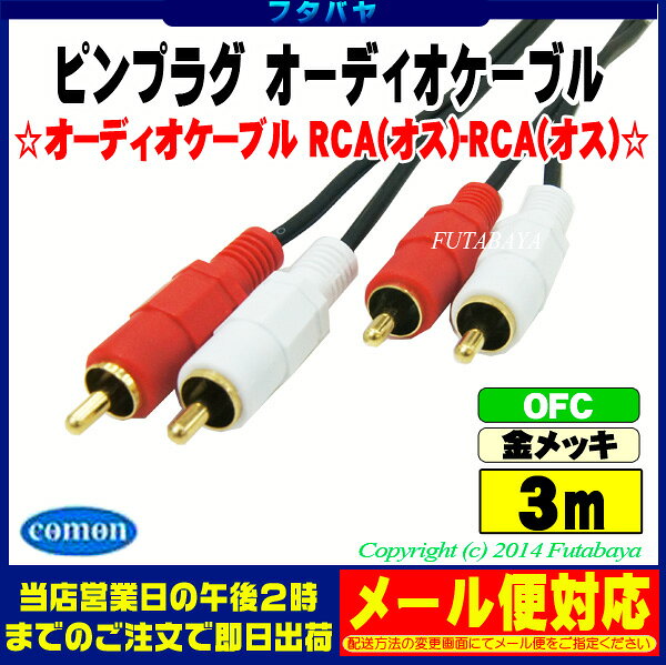 3mピンプラグオーディオケーブル RCA(オス)⇔RCA(オス)赤・白 COMON(カモン) OD-30 端子:金メッキ 長さ3m