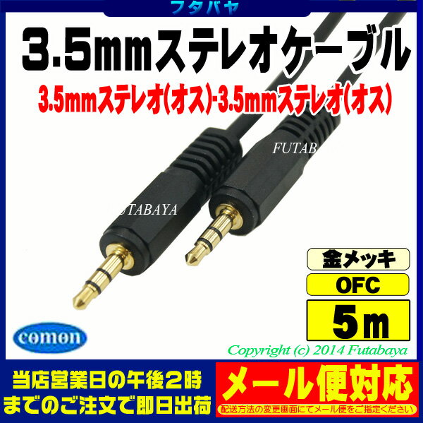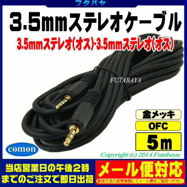 3.5mmステレオケーブル(5m) COMON(カモン) SS-50 3.5mmステレオ(オス)⇔3.5mmステレオ(オス) 端子:金メッキ アルミシールド OFC無酸素銅使用 長さ:5m