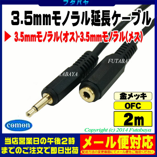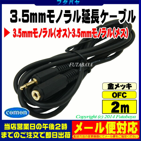 3.5mmモノラル延長ケーブル2m COMON(カモン) 35ME-20 3.5mmモノラル(オス)- 3.5mmモノラル(メス) 端子:金メッキ アルミシールド OFC無酸素銅使用 長さ:2m