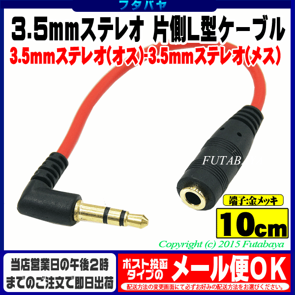片方L型3.5mm延長用ステレオケーブル SSA ST35-AF01RL 3.5mm(メス)-3.5mm(オス)L型変換 ●端子:金メッキ ●片側L型 ●長さ:10cm ●色:レッド