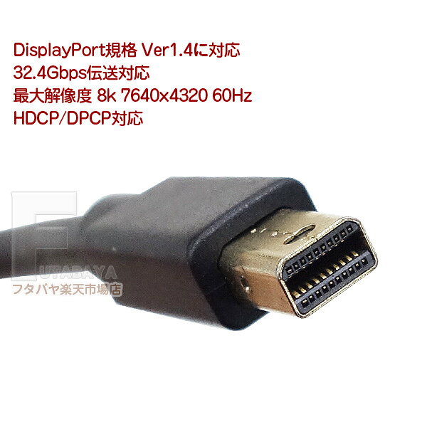レノボ・Apple・HP・DELL等の外部出力用ポートに付いてるミニディスプレイポート端子とモニターのディスプレイポート端子を接続いたします。 最大32.4Gbps高速転送レート・最大解像度8k 7640x4320/画像&音声伝送対応(周辺機器の対応も必要)に対応したVer1.4規格の製品です。 8k60P伝送対応・損失の少ない太さ5.5mmのケーブルを使用しております。 海外メーカー製に多いミニディスプレイポート端子にそのまま接続出来る片側Mini DisplayPort端子→DisplayPort端子のケーブル ※全ての組み合わせで動作を保証するものではございません。 商品説明 ミニDisplayPort(オス) DisplayPort(オス) Ver1.4 最大32.4Gbps対応 最大解像度8K 7640x4320 60Hz HDCP対応 DPCP対応 画像&音声伝送対応(機器対応必要) 8k60P伝送対応 ケーブルの太さ5.5mm 長さ:1.8m 内容量 1個 RoHS ROHS対応 ノートパソコンの画像を高解像度の大画面に接続します。 海外メーカーApple/レノボ/DELL/HP/ASUS/マイクロソフト等のパソコンに対応 ※全ての機種で動作する事を保証するものではございません。 →カモン(COMON)製品カタログはこちら →その他のディスプレイポートケーブル等はこちら ディスプレイポートには数種類の規格がございますのでご購入時にはお使いの製品・サイズ・規格等を確認した上でご購入お願いいたします。 また、機器によりましては相性などにより正常に動作しない場合もございます。 メーカー様の都合にて形状や長さ等が画像と異なる場合がございますがご了承お願いいたします。 不良品以外の返品・交換はお断りさせて頂いております。 保証期間・商品発送後2カ月とさせて頂きます。 ・パソコン用配送方法変更のしかたはこちらから・