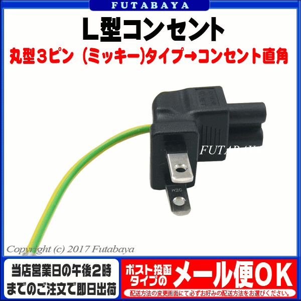 丸型3ピン電源ソケット→2ピンコンセント変換直角タイプ 丸型3ピン(ミッキー)タイプと呼ばれる電源ソケットを一般的な2ピンコンセントへ変換 直角に変換するので込み合った場所に便利 商品名 F-2PA 商品説明 丸型3ピンタイプ 2ピンコンセント 直角 PSE ROHS対応 内容量 1個 RoHS ROHS対応 梱包 簡易包装にてお届けいたします。 生産国 中国製 狭いコンセント環境で便利な直角タイプ 電源端子には数種類の規格がございますのでご購入時にはお使いの製品・サイズ・規格等を確認した上でご購入お願いいたします。 また、機器によりましては相性などにより正常に動作しない場合もございます。 メーカー様の都合にて形状や長さ等が画像と異なる場合がございますがご了承お願いいたします。 不良品以外の返品・交換はお断りさせて頂いております。 保証期間・商品発送後2カ月とさせて頂きます。 ・パソコン用配送方法変更のしかたはこちらから・