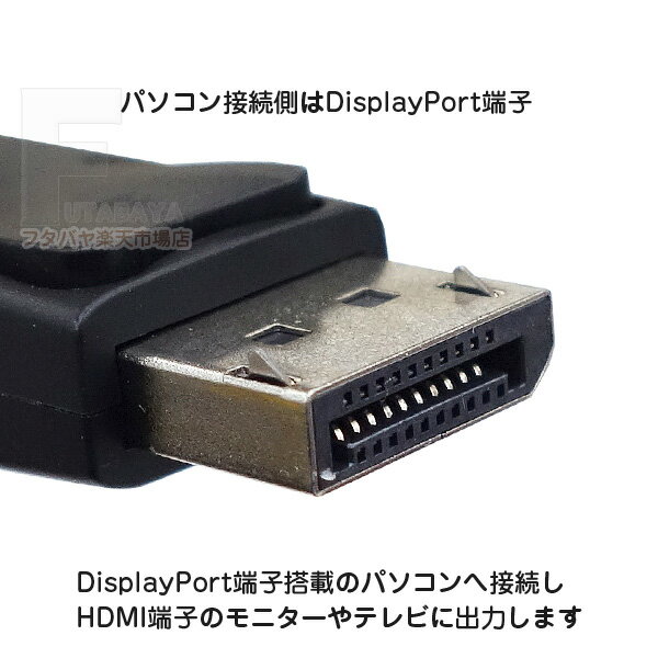DisplayPort→HDMI変換ケーブル パソコン側のDisplayPort端子からモニター側HDMI端子へ接続 最大4k UHD/60Hz解像度対応 3重シールドとツイストペアケーブルでノイズに強い