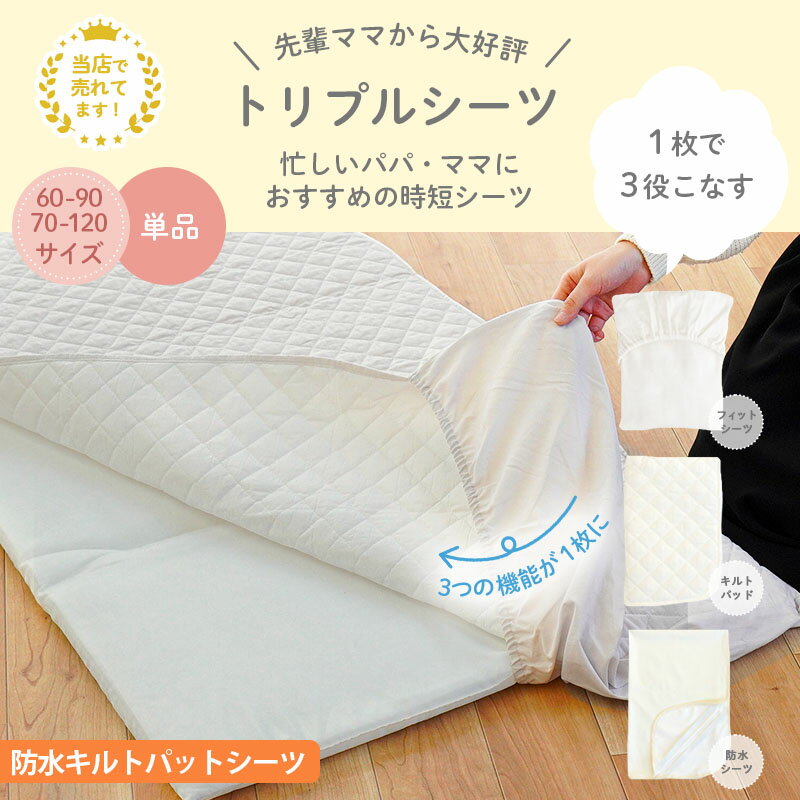 【4日20時〜2H限定10%OFFクーポン】ベビー 防水キルトパットシーツ トリプルシーツ 日本製 綿100% 時短 フィットシーツ キルトパッド 防水シーツ サンデシカ 1枚3役 ベビー布団 60×90cm ミニサイズ 70×120cm レギュラーサイズ 敷布団シーツ 子ども お昼寝 保育園 出産準備