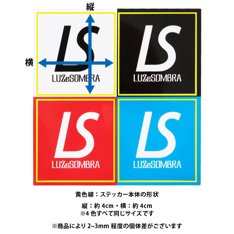 LUZeSOMBRAのLS4ピースステッカー!! ルースイソンブラのステッカーです。 1シートに4カラーのステッカーにカットされています。 同じデザインのステッカーを4色に貼り分けられます。 身の回り品をLUZロゴで染めて下さい。 material size 1シートサイズ:約9cm×9cm 4カラー各ステッカーサイズ:約4cm×4cm note ・店頭や他のネットショップでも販売しております。 ・ご注文のタイミングによって欠品の場合がございます。 ・サイズは商品により若干の誤差がございます。 ・ご利用の機器によっては実際の商品と色みが異なる場合がございます。 ・ご理解の上、お買物いただきますよう宜しくお願いします。 メーカー希望小売価格はメーカー商品タグに基づいて掲載しています