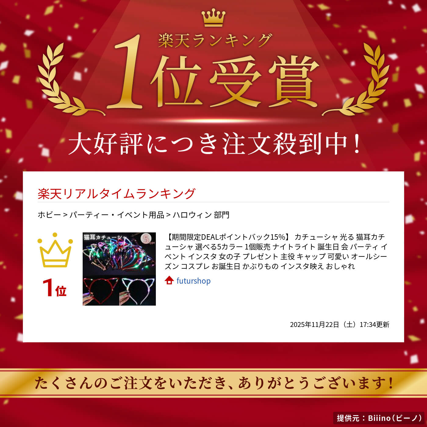 カチューシャ 光る 猫耳カチューシャ 選べる5カラー ナイトライト 誕生日 会 パーティ イベント インスタ 女の子 プレゼント 主役 キャップ 可愛い オールシーズン コスプレ お誕生日 かぶりもの インスタ映え おしゃれ オシャレ 仮装 Birthday 子供 プレゼント チャーミング ギフト サプライズ 友人 家族 パーティー 恋人 お遊戯会 子供 SNS お返し品 引っ越し 御祝い 落成記念 開業祝い 御祝 熨斗 卒団記念 卒業記念 謝恩会 入学記念 母の日 父の日 キャンペーン 引き出物 賞品 景品 記念品 お返し物 贈り物 品 営業 送別 開院祝い 開店祝い クリスマス 北欧 雑貨 可愛い アンティーク 自宅 部屋 玄関 お祝い ヨーロッパ EU アメリカン 撮影 ホームパーティー グッズ 癒し ヒーリング アイテム マスト 流行り 猫耳カチューシャサイズ 横約16cm×縦約16cm×厚さ約5mm *頭周りはフリーサイズです 素材 布、プラスチック カラー ・薄いピンク ・濃いピンク ・レッド ・パープル ・ブルー *1つのお値段です *3パターンの点滅に切り替え可能です。スイッチを押すと切り替えできます *電池はボタン電池を3つ使います。おまけで付属しておりますが入荷時期によっては付属していない場合がございますのでご了承ください *ボタン電池の規格はLR44です おしゃれでインパクトのあるカチューシャは、サプライズにもぴったり!ライトが点滅するカチューシャで目立ち度MAX! 家の外でも中でもパーティーの雰囲気がだせるゴージャス&モダンなテイスト、コーデを楽しもう! ゴージャスなカラーで、程よくCuteさもプラスされ、オシャレ上級者のセンスのいい大人の方からオシャレキッズまで幅広く人気です パーティーお開き時にゲストへのお土産にもできるアイテムです 優しい気持ちになれるおもしろカチューシャです。このカチューシャは猫耳をイメージしたデザインで雰囲気が和む存在感が魅力的! イベント用カチューシャでサッと被れてコスパの良い商品です。お部屋の雰囲気パッと明るくなってパーティーシーンを賑やかに演出できます ネコミミデザインがとてもポップでマイルドで可愛いです。男女共に大人気です。ユニセックスデザインなので、ペアルックにも 帽子の上からも装着でき、ご自身用は勿論、友達と彼女へのプレゼントにもお勧めです パンク ロック ロンドンファッション UKファッション ゴスロリ などの激しいファッションや スチームパンク などの個性派の方、可愛い雰囲気 V系 ヴィジュアル系 ゆめかわいい 服好きの方にもおすすめです ハロウィンやSNS、撮影と幅広く活用できるカチューシャで、ご自身用は勿論、友達とへのプレゼントにもお勧めです インパクトある作り!各種イベント、パーティーで部屋がおしゃれに大変身!大活躍、盛り上げてくれること間違いなし 【華やかさ満点】 華やかに演出するパーティーカチューシャです。このカチューシャでホームパーティーがおしゃれな空間に早変わりします 【オススメシーン】 誕生日、結婚式、二次会、女子会、お祝い、パーティ、文化祭、運動会、記念写真、サプライズ、お店の飾りなど、あらゆる場面で目立つ演出ができます ●PCモニターの色彩具合などにより、色の見え方に違いがある場合がございます。 ●色違い、商品違い、大きな欠陥の場合は、到着後3日以内に連絡下さい 。 ●生産時期によってデザインが若干異なる場合がございます。予めご了承ください。 ●色やサイズがお気に召さないなどの交換、イメージと違った等による返品は未開封の商品でもお受け出来ません 誕生日 birthday バースデー 記念日 Party アニバーサリー Aniversary お祝い イベント サプライズ ギフト プレゼント 男の子 ボーイズ 男性 女の子 女性 子供 ベビー ベイビー キッズ 大切な人 大切な方 大切な時間 大人 赤ちゃん 6か月 半年 パーティー ホームパーティ パーティ Party お気に入り 頭装飾 店舗 店内 お店 ディスプレイ ディスプレー デコ デコレーション ボリューミー ゴージャス 華やか SNS映え インスタ映え 記念写真 記念撮影 写真映え 映える キュート ラブリー 楽しい かわいい キラキラ 鮮やか 上品 高級感 北欧風 オシャレ 元気 お姫様 さわやか きれい 綺麗 キレイ ラクラク 簡単 パーティーデコレーション カフェ 持ち寄り ホームパーティー コスプレ 仮装 バースデーハット birthday hat かぶりもの キャップ イベント用品 お祝い ハロウィン 衣装多彩な贈り物シーンに対応したギフト 内祝い お祝い返し ウェディングギフト ブライダルギフト 引き出物 結婚内祝い 出産内祝い 入園内祝い 入学内祝い 卒園内祝い 単身赴任内祝い 就職内祝い 新築内祝い 引越し内祝い 開店内祝い 快気内祝い 結婚祝い 出産祝い 初節句 七五三 成人祝い 就職祝い 昇進祝い 新築祝い 上棟祝い 家づくり祝い 退職祝い 還暦 古稀 喜寿 傘寿 米寿 卒寿 白寿 長寿祝い 結婚記念日 銀婚式 金婚式 ダイヤモンド婚式 記念日 誕生日 バースデー 誕生日プレゼント クリスマスプレゼント クリスマスギフト 冬ギフト 父