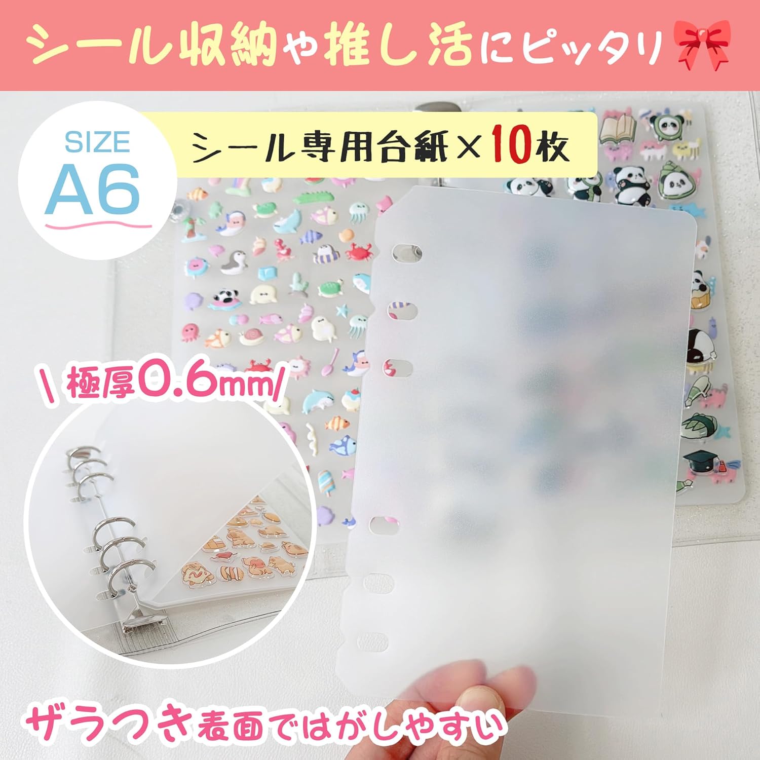 シール台紙 a7 リフィル ppシート 6穴 A7 /A6/M5 サイズ シール専用台紙 はがせる シール台紙 剥離紙 12枚セット シール帳 女の子 バインダー用 収納 クリアで可愛い シール帳 台紙 リフィル 透明 マット( 10枚入り)