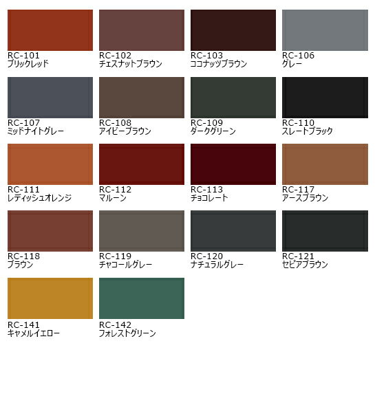 エスケー化研 一液プレミアムルーフシリコン 各色一覧 標準色 一液プレミアムルーフシリコン ツヤ有 標準色(コロニアル,スレート用)14K 標準色濃彩 一液プレミアムルーフシリコン ツヤ有 標準色濃彩(コロニアル,スレート用)14K 標準色 一液プレミアムルーフシリコン ツヤ有 標準色(トタン,金属用)14K 標準色濃彩 一液プレミアムルーフシリコン ツヤ有 標準色濃彩(トタン,金属用)14K 専用下塗材 一液マイルドシーラーES クリヤー 14K コロニアル、スレート専用下塗材 専用下塗材 マイルドサビガード 各色 16K トタン専用下塗り材 専用下塗材 マイルドボーセイ 各色 16Kセット ガルバニウム鋼板専用下塗材 商品説明 内容量 16K 希釈 塗料シンナーA 特徴 超耐候形一液弱溶剤特殊シリコン樹脂屋根用塗料 14K 1缶で50〜63平米(2回塗)塗装できます。 塗装方法。 刷毛、ローラーなどで塗装します。サンドペーパー、ウエスなどで素地面をきれいにしてから2回塗りしてください。 5〜20%程度の塗料シンナーAで希釈してください。 コロニアル、スレートの専用下塗り材は「一液マイルドシーラーES」です。 トタン屋根の専用下塗り材は「マイルドサビガード」です。 ガルバニウム鋼板の専用下塗り材は「マイルドボーセイ」です。 適用下地 コロニアル、スレート、トタン、ガルバニウム鋼板