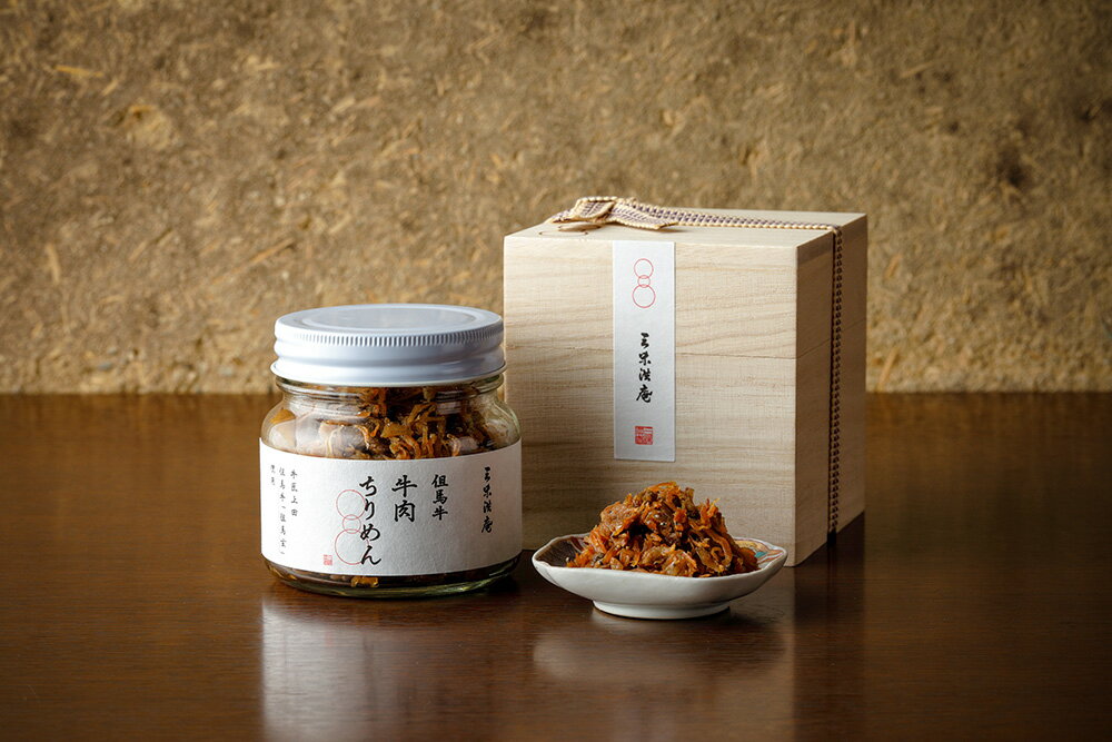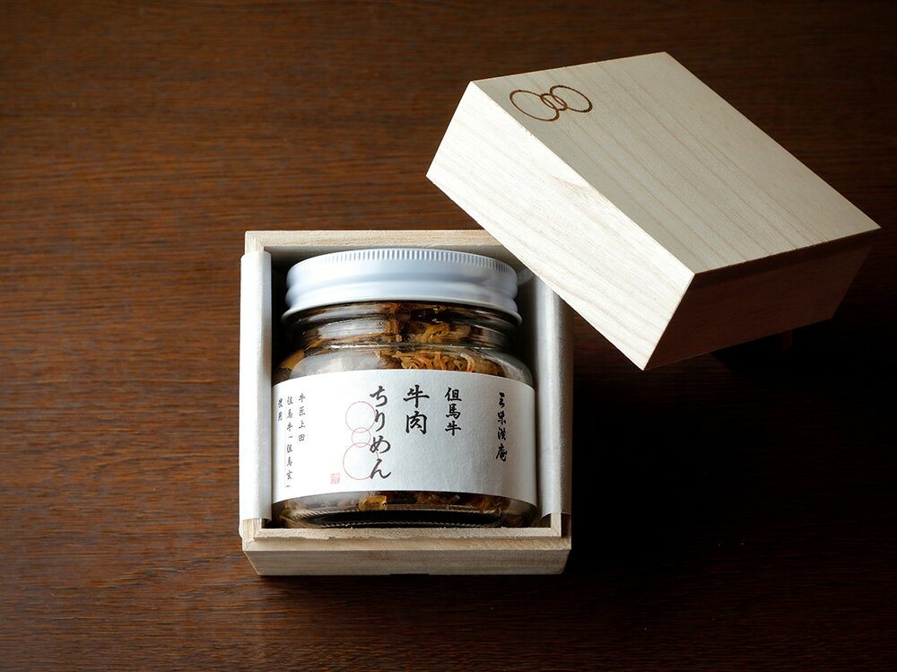 蕎麦と料理で魅せる京都の『三味洪庵』。看板の「ちりめん山椒」に、兵庫県『上田畜産』独自のブランド牛『但馬玄』と炊き合わせた「牛肉ちりめん」。 京都三味洪庵の老舗の味「山椒ちりめん」は究極の味を追い求め、幻の但馬牛【 但馬玄(たじまぐろ)】と出会い「牛肉ちりめん」を但馬玄のしっとりとふくよかな旨みが加わり、食材の個性が光りつつも味の重なりが楽しい一品に完成させました。 うま味だけを縮した柔らかく甘みのある牛肉と、ちりめんのふっくらした食感、高知県産黄金生姜と和歌山県産ぶどう山椒のさわやかな香り。それぞれの個性を引き立てるよう、味付けには特に気を配り、職人が長年の経験を生かして手作りしています。 ご飯のお供にも、酒の肴にもお勧めできる自信作です。 ■牛肉ちりめん 内容量:140g 賞味期限:製造日から常温保存で60日 宅配便(常温)でお届けします。 配達日:お申込みより7日以内に発送致します(土日祝除く)。 のし、のし名入れ:可 贈答用包装、二重包装、メッセージカード:不可 紙袋の同梱:可 原材料:【牛肉ちりめん】 牛肉(兵庫県但馬産)、清酒、ちりめんじゃこ、醤油、ごぼう、砂糖、水飴、生姜、みりん、醸造酢、調味だし、実山椒、酵母エキス、(一部に小麦・牛肉・さば・大豆を含む) ※原材料は予告なく変更する場合があります。詳細はお問い合わせください。 用途(イベント):ご自宅用、お中元、お歳暮、ご贈答 ※お届け先が沖縄は送料1,914円となります。ご請求時に変更となります。(税込) ※G-Callショッピングにて他の商品と一緒にご購入の場合、別途送料がかかる場合があります。その際はご注文後ご連絡いたします。