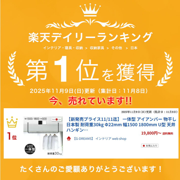 ■正午~Wクーポン5%+1500円引■ 最安挑戦中 楽天1位 国産 一体型 Φ22 アイアンバー 耐荷重30kg 幅 1500 1800 物干し 天井 ハンギング ハンギングバー ハンガー ハンガーバー アイアン バー ハンガーパイプ ランドリー ランドリーバー コートハンガー ラック 日本製