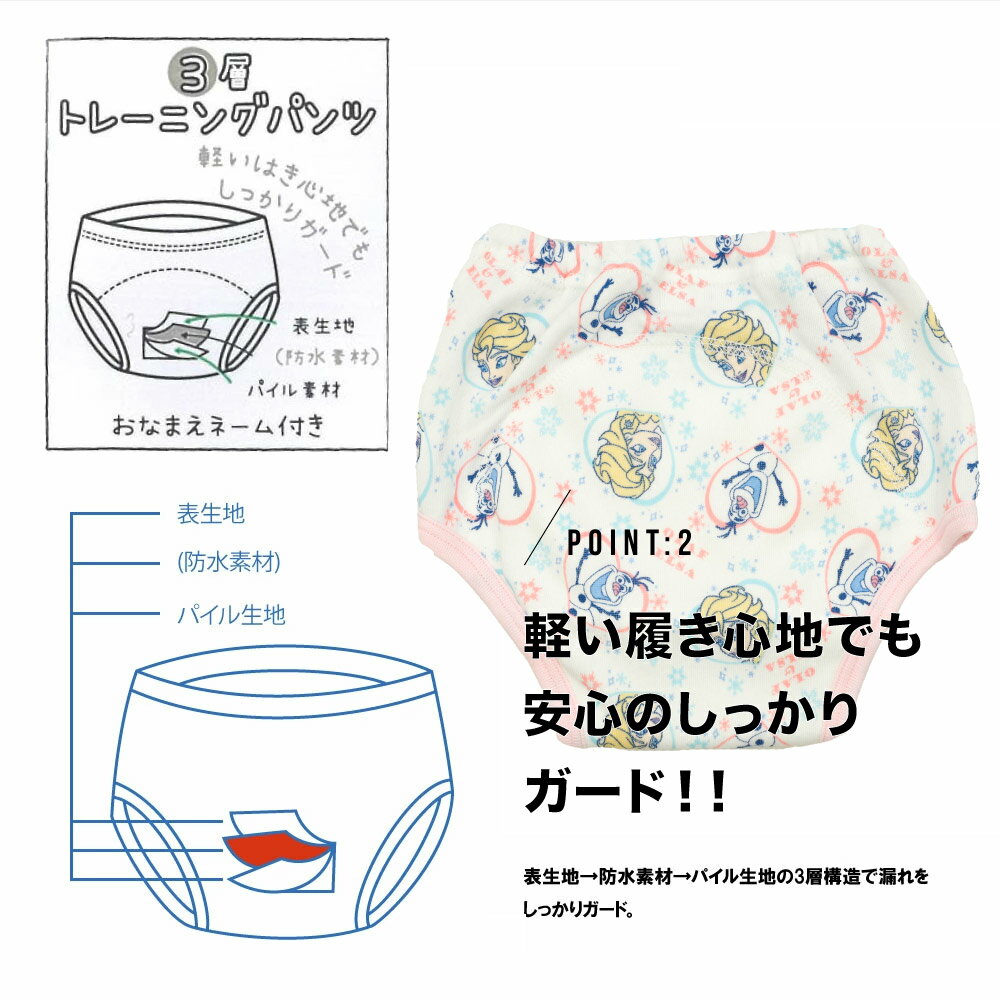 3枚組 アナと雪の女王 3層トレーニングパンツ トレパン トイトレ ベビー下着 下着 子ども下着 90 95 100 ディズニー 女の子 アナ雪