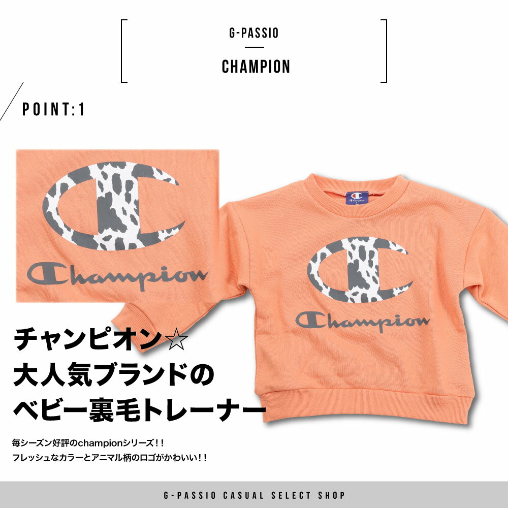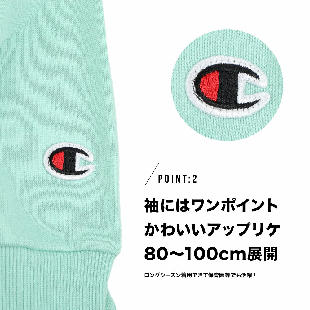 チャンピオン 長袖 トレーナー champion ベビー 男の子 女の子 裏毛 出産祝い ロゴ 刺繍 ブランド 80 90 95 100 プルオーバー グリーン オレンジ 春 秋 可愛い プレゼント 動物 アニマル パーカー 保育園