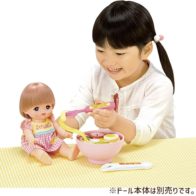 本物みたいに伸びる麺を、フォークでメルちゃんに食べさせられます。 トッピングした、たまごやチャーシューもメルちゃんに食べさせてあげられます。 ※お人形は含まれておりません。 ★セット内容 ラーメン(めん・チャーシュー・たまご・キャベツ)、スプーン、フォーク ★対象年齢 3歳以上 ※掲載画像はすべてサンプルです。商品改良により実際お届けする内容と一部異なる場合もございます。