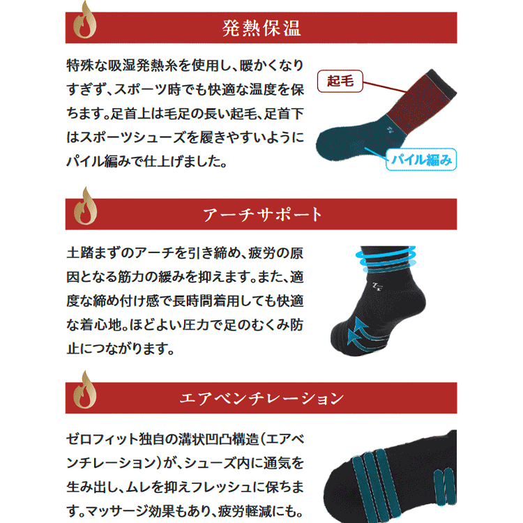 【当店在庫】【メール便送料無料】イオンスポーツ ゼロフィット ヒートラブ ソックス スポーツ 冬スポーツ専用 HEATRUB SOCKS SPORTS 起毛スポーツソックス