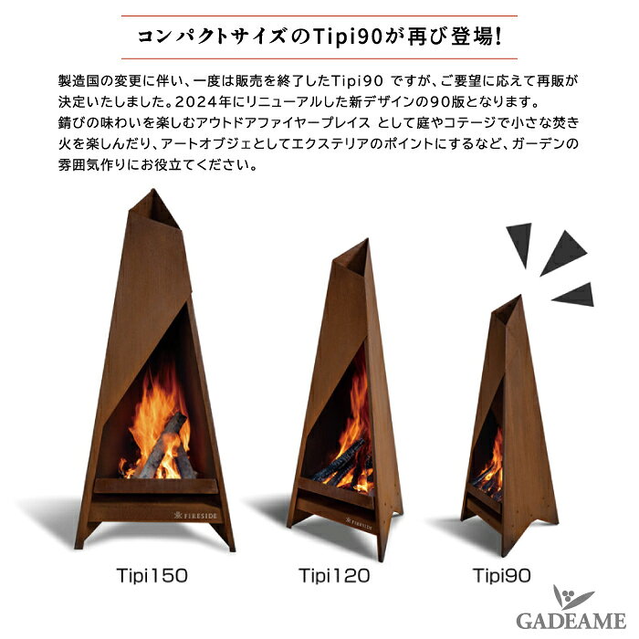 【2025年 90版再登場!】Tipi ティピ 150/120/90 アウトドア ファイヤープレイス FIRESIDE オリジナルデザイン 屋外ストーブ ガーデンストーブ コールテン鋼 サビ グランピング ファイヤーピット キャンプファイヤー 薪火 焚火台 ファイヤーサイド HETA後継品