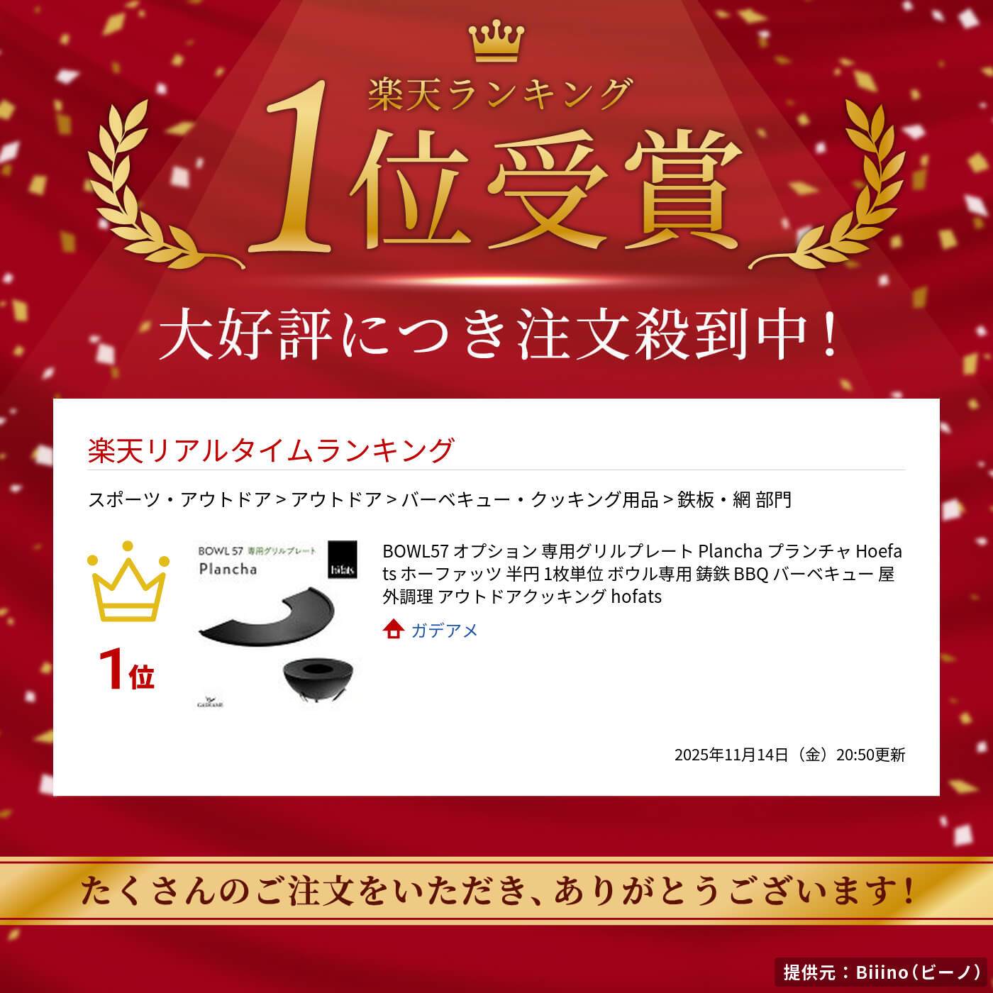 BOWL57 オプション 専用グリルプレート Plancha プランチャ Hoefats ホーファッツ 半円 1枚単位 ボウル専用 鋳鉄 BBQ バーベキュー 屋外調理 アウトドアクッキング hofats