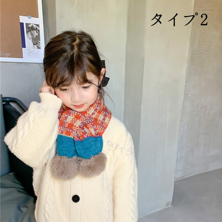 マフラー ファー 保温 あったか ふわふわ もこもこ ティペット キッズ 男女兼用 男の子 女の子 子供用 こども用 ポンポン ファッション 小物 秋冬 プレゼント ギフト 防寒 ニット 【メール便で送料無料】