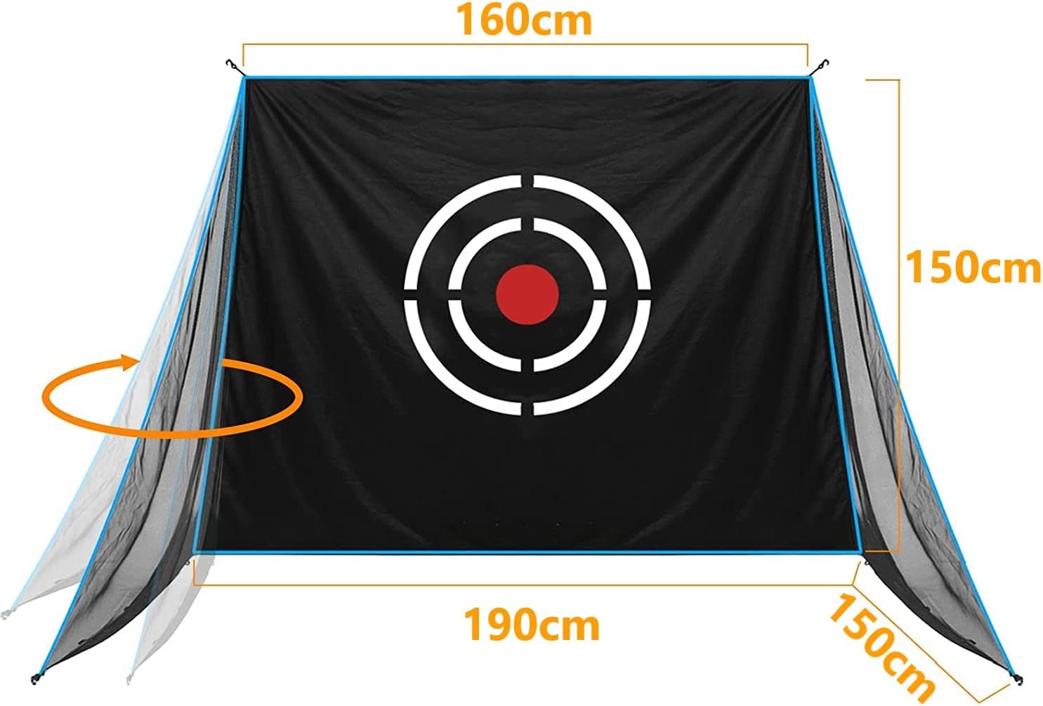 【Gagalileo 送料無料 即納】 ゴルフターゲット 1.6×1.9×1.5m ゴルフ標的 ゴルフ的 取替ターゲット 練習用 台形ターゲット 黒色 ブラック色 室内 屋外 サイドネット付き 飛散防止 角度調節可能 初心者向け sフック付き