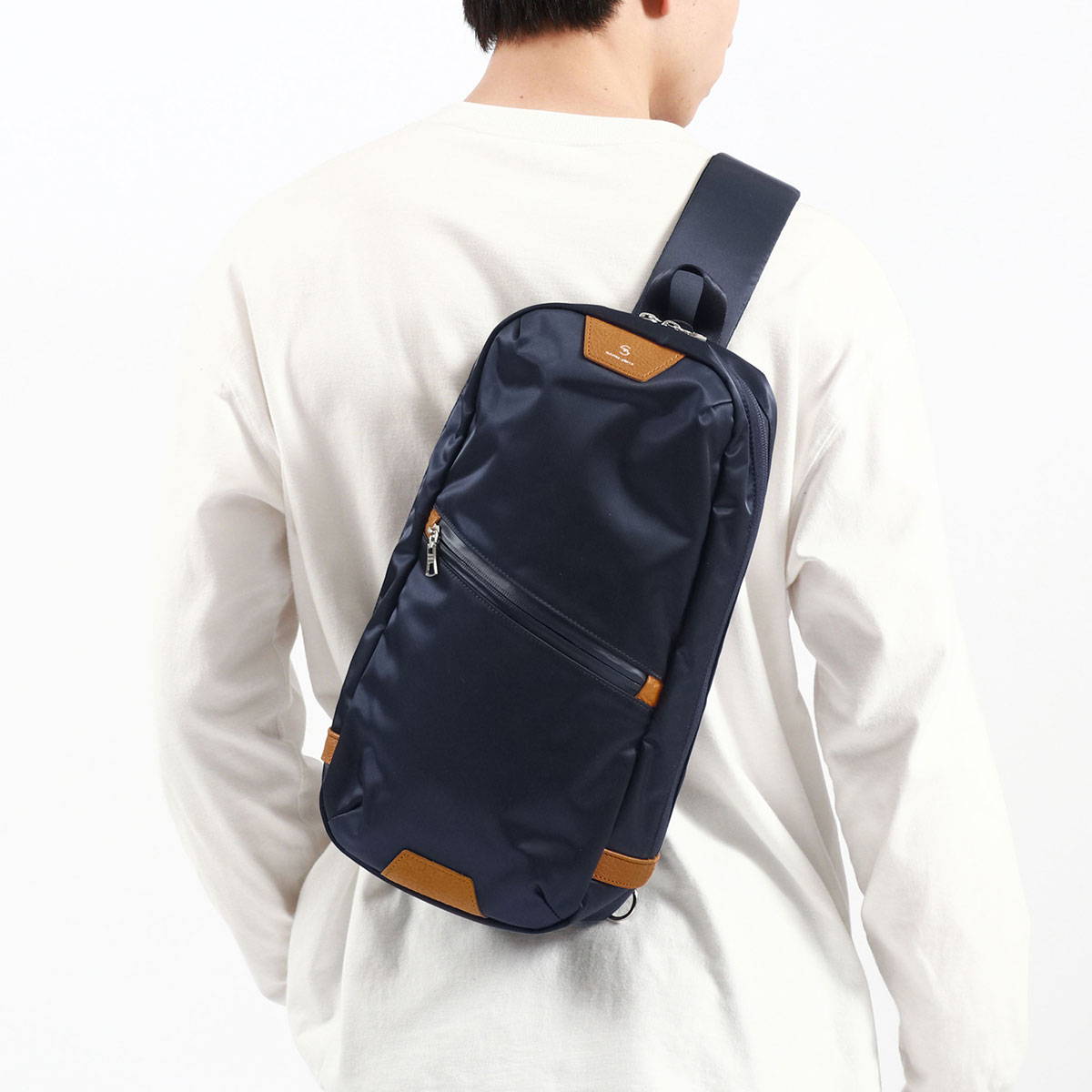 master-piece/master piece/masterpiece/マスターピース/Progress/プログレス/スリングバッグ/L/縦型ボディバッグ/ボディバッグ/ボディーバッグ/縦/縦型/タテ/斜め掛け/斜めがけ/斜めがけバッグ/バッグ/スリングバッグ/ワンショルダーバッグ/ショルダーバッグ/B5/小さめ/コンパクト/防水/撥水/はっ水/耐水/止水ファスナー/ナイロン/本革/牛革/革/カジュアル/大人/おしゃれ/かっこいい/ブランド/日本製/大人/メンズ/レディース メーカー希望小売価格はメーカー商品タグに基づいて掲載していますハリ感と防水性を備えた上品なボディバッグ 光沢感のあるナイロンツイルによる上品な表情と、コンビネーションに使用されたカウレザーが印象的な『Progress』シリーズの縦型ボディバッグ。防水性のあるファスナーや生地を採用することで、水にも強く様々なシュチエーションで使用できるアイテムになっています。両手を開けて身軽にお出掛けしたい日に重宝します。 01. 02. 03. STYLING 素材<表地>100d ナイロンツイル(PVC コーティング)<付属>オイルドカウレザー(コンビネーション鞣し) サイズ<本体>幅 約 195×高さ 約 385×マチ 約 95(mm)<ショルダーストラップ>長さ 約 580〜1120×幅 約 38(mm)※当店のサイズ計測方法はこちら 重さ約 440g 生産国日本 カラーBLACK(10)、ORANGE(40)、NAVY(75) 仕様<外側>ジップポケット(L)×1ジップポケット(M)×1<内側>ポケット(L)×1キーフック×1 <購入前にご確認ください>・メーカーによる商品改善などにより、仕様が変更される場合もございます。・天然皮革を使用する製品のほとんどが、天然皮革ならではの風合いを生かして作られているため、表面にキズ・色ムラ・シワがある場合がございます。特性上、良品となりますので予めご了承ください。※皮革の特性について購入前に必ずご確認ください・水濡れ(雨・汗など)や日焼けによる色落ち、退色は避けられませんので、夏季、雨天でのご使用、また淡い色の服装に合わせる場合は十分にご注意ください。・極力実物に近い色味を再現しておりますが、モニター等の条件により画面上と実物では色味が異なって見える場合がございます。 もっと探す 縦型ボディバッグ(ナイロン・その他) アイテムリストから探す master-piece マスターピース ブランドリストから探す