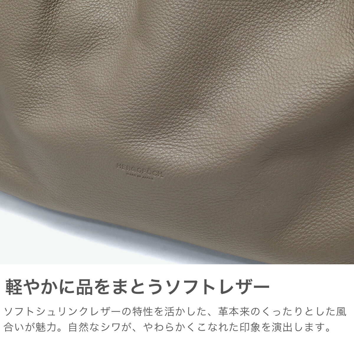 エルゴポック トートバッグ HERGOPOCH メンズ 大きめ 大容量 A4 本革 レザー ブランド 2WAY ショルダー バッグ 斜めがけ シンプル 柔らかい TC ソフトシュリンクレザー 2wayトートバッグ トート 2WAYトートバッグ 2WAYトート 2WAYバッグ ショルダーバッグ 肩掛け 斜め掛け 斜め掛けバッグ 斜めがけバッグ TC-ソフトシュリンク マグネット式 マグネット開閉 マグネット A4サイズ 大きい 手持ち ハンドル 牛革 革 シュリンクレザー レザーバッグ レザートート 上品 モード かっこいい カジュアル 日本製 大人 レディース 男性 おしゃれ オシャレ お洒落 旅行 トラベル おでかけ お出掛け 2WAYバッグ有 A4サイズ収納可能 オールシーズン 斜め掛け有 ファスナーしなやかな革の表情で 品格漂うトートバッグHERGOPOCHの使用するレザーで最もソフトなシュリンクレザーを使用した『TC』シリーズの2WAYトートバッグ。余計なパーツの切り替えを極力減らし、やわらかく上品な印象に仕上げました。大ぶりなサイズながらかっちりしすぎず、洋服とのコーディネートを幅広く楽しめます。 COLORS LOOK サイズ (約)<本体>W45×H34×D14(cm)<ハンドル>高さ 7(cm)<ショルダーストラップ>長さ 56〜103×幅 3(cm)※サイズ・重量は当店計測値となります。 商品により、若干の個体差が生じます。※当店のサイズ計測方法はこちら 素材<表地>牛革<裏地>ポリエステル 重量 (約)950g カラーBLACK(BK)、TAUPE(TP) 原産国日本 仕様<内側>ポケット×5<付属品>収納袋×1 <購入前にご確認ください>・メーカーの意向により、付属品の収納袋や箱、製品の仕様やデザインは予告なく変更となる場合がございます。・商品をご使用する前に、「取り扱い上の注意」「洗濯表示」等を必ずご確認ください。・PC・タブレットサイズは目安です。同じインチ数でも製品によってサイズが異なるため、対応できない場合もございますので、予めご確認の上お求めください。・天然皮革や天然素材を使用した製品は、素材本来の風合いとしてキズや色ムラ、シワ、色の濃淡、素材の割れ、けば立ち、形の歪みなど、一点一点違いが見られる場合がございます。商品の特性としてご理解の上、お楽しみください。※皮革の特性について購入前に必ずご確認ください・防水機能がある製品は、完全防水ではないため、縫製部分である針穴からなどの水の侵入は防ぐことはできませんのでご注意ください。・水濡れ(雨・汗など)や日焼けにより、色落ち、退色する恐れがございます。商品のお取り扱いには十分にご注意ください。・柄の位置やカラーバランスなどは、生地の裁断や製造過程、素材の特性により画像とは異なる場合がございます。商品をお選びすることはできませんので、予めご了承ください。・ダブルジップファスナーの商品につきましては、ファスナーの構造上、順目、逆目が存在しており、片方(逆目)に多少の引っ掛かりを感じることがございます。ダブルファスナーの特性上、不良品ではございませんので、予めご了承ください。・極力実物に近い色味を再現しておりますが、モニター等の条件により画面上と実物では色味が異なって見える場合がございます。 もっと探す A4サイズトートバッグ(レザー)一覧にアクセス アイテムリスト一覧にアクセス ブランドリスト一覧にアクセス