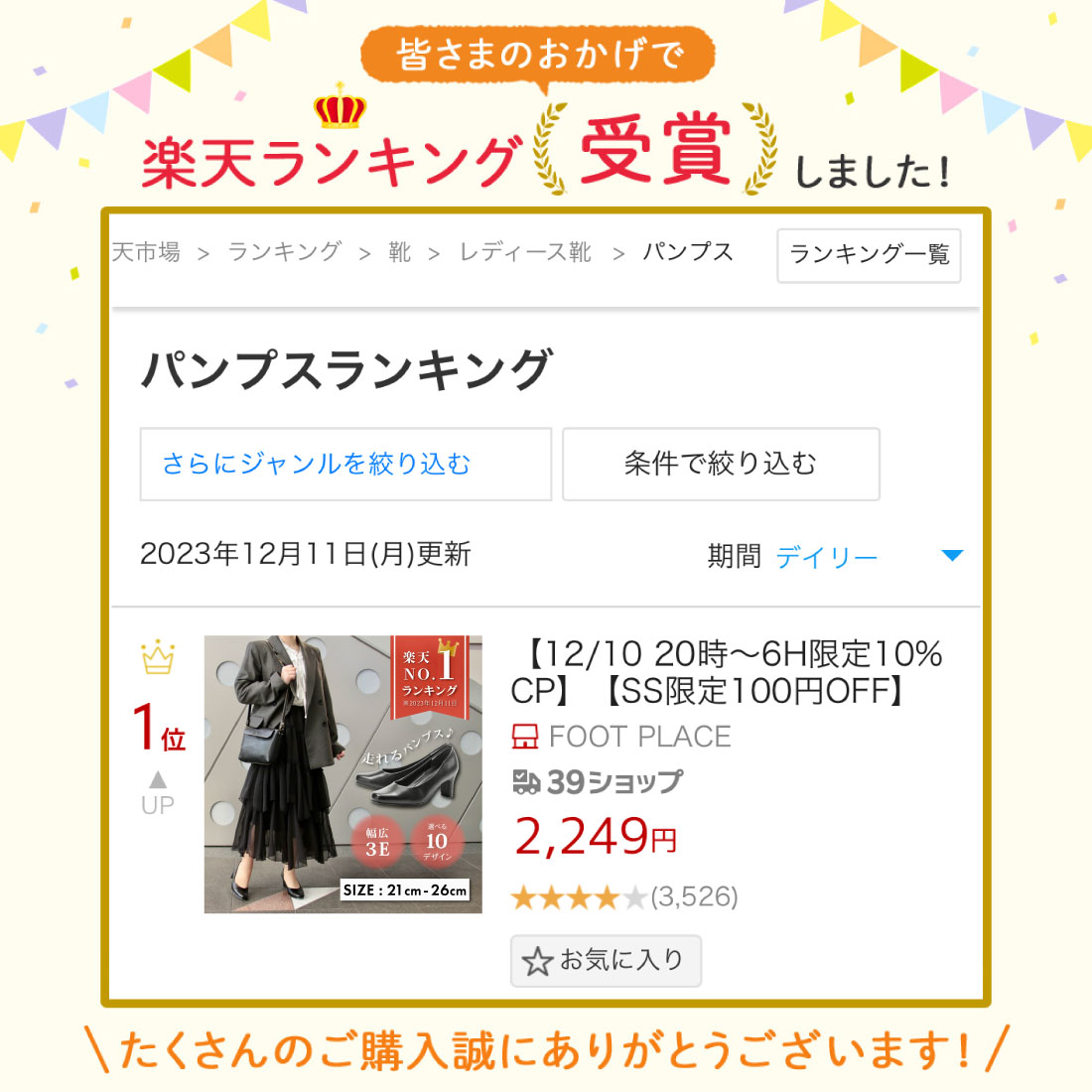 商品情報 ワイズ 3E (EEE) ヒール高 約3.5cm/約5cm/約5.5cm/約6.0cm約6.5cm/約7.0cm サイズ 21cm 21.5cm 22cm 22.5cm 23cm 23.5cm 24cm 24.5cm 25cm 25.5cm 26cm 重さ 約170g 素材 合成皮革 生産国 中国 特長 シンプルで使い勝手の良いフォーマルパンプス。冠婚葬祭・リクルート・ビジネスetc…必需品としてふさわしい上品なデザインとお手頃価格で大人気のパンプスです。やわらかい人工皮革と幅広3Eで履きやすく踵部分にジェルインソール内蔵で歩行時の衝撃を和らげます。 3,980円 5,980円 3,980円 3,980円 2,000円 注意点:モニターの発色具合によって実際のものと色が異なる場合があります。また、商品によっては【靴箱の破損・色あせ】や【靴箱内の包装用紙破れ・用紙なし】【製造上のボンドの付着】が生じる場合がございます。仕様上問題ないと判断された商品を出荷をしておりますので安心してご使用ください。メーカー希望小売価格はメーカーサイトに基づいて掲載しています。※クリックするとメーカーWEBページ抜粋部分を表示します。
