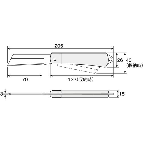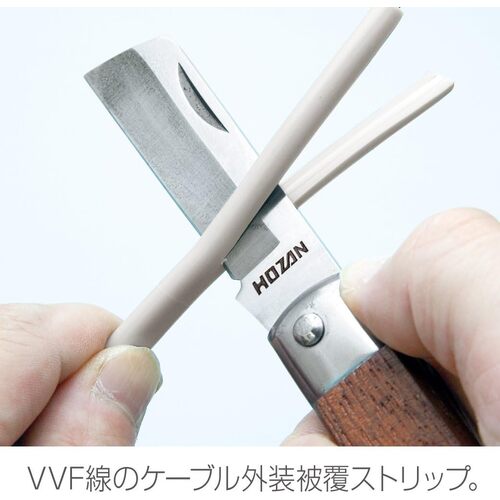 【特長】●第1種/第2種電気工事士技能試験推奨機種です。●持ち運びに便利な折りたたみ式です。●VVF、VVRケーブルのケーブル外装・芯線被覆のストリップ、ゴムブッシングに切れ込みを入れる際にも活躍します。【用途】●電線の皮むきなど。【仕様】●全長(mm):205(収納時122)●刃長(mm):70【仕様2】●硬度:HRC60(刃部)【材質/仕上】●刃部:工具鋼【注意】●刃物なので取り扱いに注意してください(工具としてご使用ください)。【原産国(名称)】日本【質量】120.000【質量単位】G【JANコード】4962772096833【メーカー名】ホーザン(株)【関連キーワード:ものづくりのがんばり屋楽天市場店 手作業工具 ハサミ・カッター・鋸 電工ナイフ 電工ナイフ HOZAN TOOL IND.CO.,LTD. HOZAN Knife for Electric Work Hand Tools Scissors/Cutters/Saws Electrician Knives】