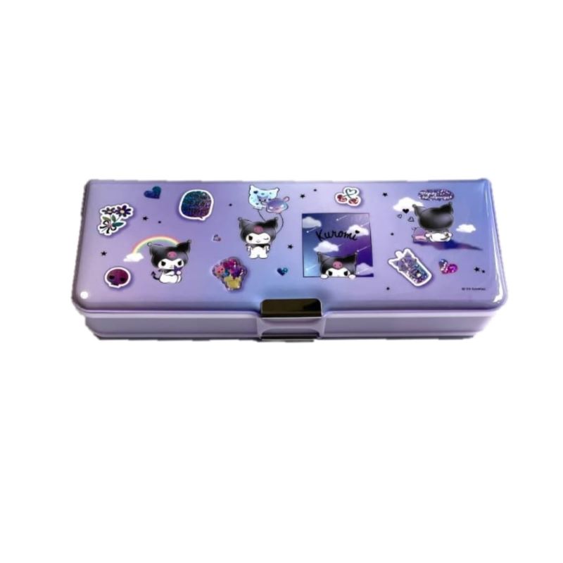 クロミ 筆箱 箱型 両面 コンパクト 筆入れ 小学生 女の子 サンリオ ホログラム SANRIO 入学 準備 かわいい 大人かわいい クロミ ペンケース お勉強 キャラクター コンパクトでランドセルにフィットのかわいい筆入です。両面開きタイプだからたくさん収納できちゃう♪鉛筆ホルダー(6本)お名前ペンも入るサイドスペース。時間割表。取り外せる鉛筆削り付き。入園入学準備や新学期準備、お祝いプレゼントなどにもオススメ♪本体サイズ:約幅22×奥行9×高さ3.5cm。主な材料・原料:PVC、ABS樹脂※商品画像はカメラで撮影し可能な限り色合わせを行なっておりますが、ご使用のモニターや環境によっては実際の色味と異なる場合もございますのでご了承下さい。 5