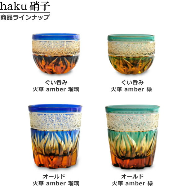 江戸切子 オールド 火華 amber 緑色 haku硝子