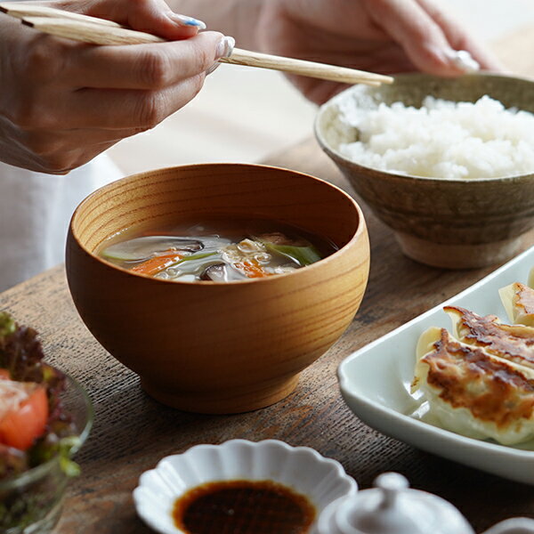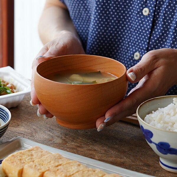 ◆製品仕様-Product Specifications- サイズ 約 Φ11.5×6.8(cm) 重量 約 155g 容量 約 230ml(8分目)/約 330ml(すりきり) 材質 けやき(天然木/国産) 仕上げ ウレタン仕上げ(日本) メーカー 薗部産業(神奈川県小田原市) 備考 電子レンジ・食器洗い機・乾燥機不可※寸法、容量、重量は個体差があります。 ◆お手入れ方法-How to take care- 初めてお使いの際に木素材や塗膜の匂いが気になる時は、80度位のお湯を縁まで注ぎ、4〜5分蒸らしてからこぼし柔らかい布でふきあげ、風通しの良い場所にしばらく置いて様子をみてください。 毎日のご使用時には湯汁、油分の多いもの、粘りのある粥などを、沸騰し煮立っている鍋等からすぐにそそがず火を止め、ひと呼吸おいてからうつわによそってください。 ご使用後は、熱湯につけたり、水などへの長時間の漬け置きはさけ、水かぬるま湯で、柔らかな布やスポンジを使い洗ってください。食器用洗剤もお使いいただけますが、固いたわし、研磨スポンジ、研磨クレンザーなどは使えません。その後は、自然によく乾かしたり、柔らかいふきんで拭いてからしまってください。 電子レンジ、食器洗い機、食器乾燥機は木の器にはお使いになれません。また、直射日光、直接空調のかかる所、熱いレンジの側などに置かないでください。繊維質の中の多数の極小さな空気粒が膨張縮小し、退色、歪み変形、ひびなどの原因になります。 ◆商品説明-Description of item- 国産の貴重な木材を使用した、丸みがあってころんと可愛い愛嬌たっぷりのお椀。 両手で包み込むと、天然木のあたたかみが伝わり、このお椀でお味噌汁を飲むと不思議と身も心もほっこり幸せで満たしてくれるのです。 普段のお味噌汁はもちろん、野菜が美味しい春には具だくさんのミネストローネ、暑い夏には冷製スープやキンキンに冷えためんつゆを入れて、食欲の秋にはお芋や根菜たっぷりのポトフや豚汁、凍えるような寒い冬には心温まるシチューやお汁粉でホッと一息。 四季を通して盛りつける料理を選ばず、北欧食器とも取り合わせがよいので、どんな好みの人でも気軽に使え、その優しい口当たりと使い心地のよさは、使うほど愛着が増していきます。 ひとつの器を作るのに数カ月という長い時間をかけて作られるめいぼく椀。 日本の豊富な水とたくましい大地で育った天然木を使用し、製材から乾燥、木地挽き、塗装仕上げまで、木と道具を熟知した薗部産業の職人の手により全て手作業で行われています。 美しく流れる木目に、すべすべと滑らかな木肌は、まるで無塗装の様に見えますが、実はウレタン仕上げで使い勝手も抜群。 使い手のことを考えた、日常使いにぴったりの嬉しい器。 次第に深い色味へと変わっていく姿が見れるのも木製品ならではの醍醐味です。 ※箱の形状、色などは変更となる場合があります。 ※画像の色はブラウザや設定により、実物とは異なる場合があります。予めご了承下さい。■ 追加オプションをご希望の方へ 名入れ・照明加工・紙袋・有料のラッピングなどの追加オプションは、商品とは別途料金がかかります。 ご希望の追加オプションをカートに入れ、商品と一緒にご注文ください。 カートに入れずにご注文いただいた場合はオプション料金を店舗側にて追加させていただきます。 お支払い方法に前払いをお選びの場合は、楽天市場からの追加変更の案内をお待ちいただき、変更後の金額でお支払い下さい。